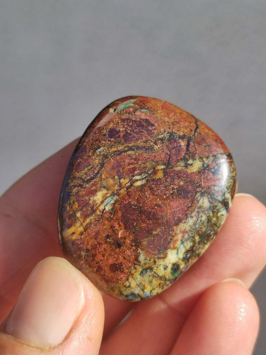 Diese Rarität ist etwas ganz besonderes ~ ein Zarinit Handschmeichler in wundervoller Qualität Ein seltenes Sammlerstück! Maße: 31 x 25 x 8mm ~Zarinit~ Chemische Formel, Mineralklasse: Azurit, Malachit, Cuprit, Kupfer,...