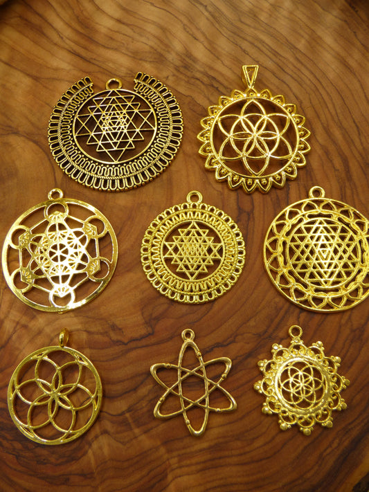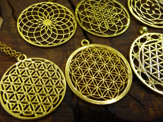 Verschiedene Lebensblume Anhänger Größe der Anhänger: 3,5 - 4cm Material: Metall mit einer goldenen Zink Legierung Beidseitig Kette Material Wahl: ~Lederband 1,5mm Antik Braun ~Goldene Kette mit Karabinerverschluss Wir wünschen...