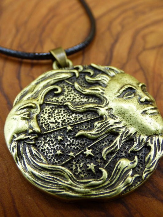 Sonne & Mond / Tag & Nacht ~ Amulet Kette aus Antik Messing ~ Wir haben noch viele ähnliche Ketten in unserem Sortiment :) Dieser Anhänger ist sehr massiv, hat...