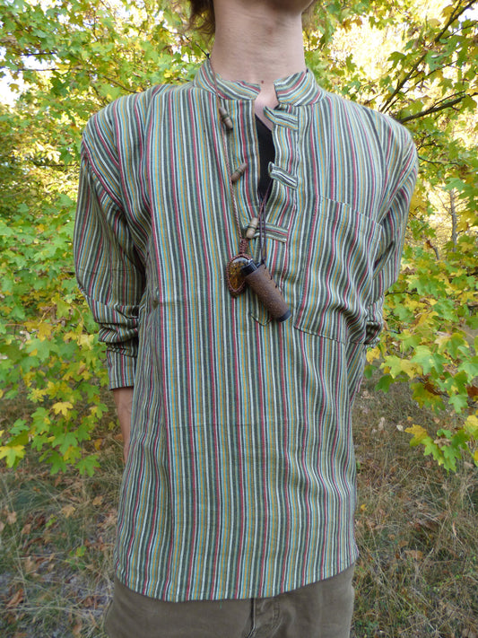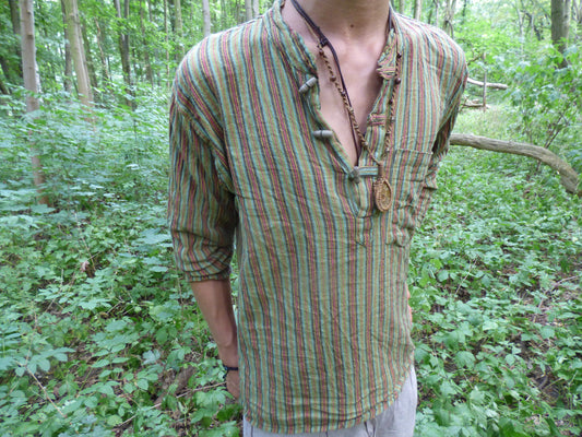 Eine natürliches Baumwollhemd in gestreiftem grün (wir haben eine fast exakte Version in einem anderen grün - sowie in beige) Hier bieten wir euch ein Kleidungsstück an ~ welches jedoch...