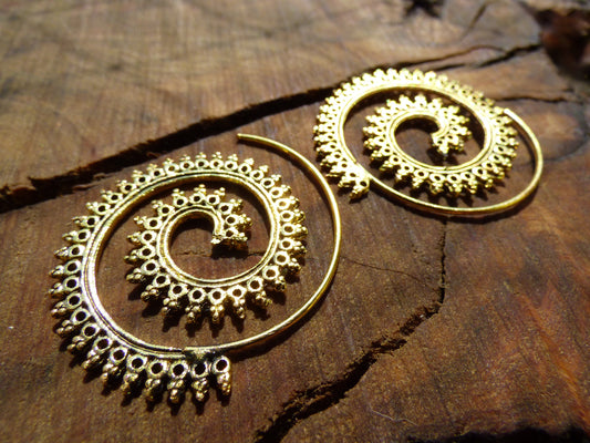 Mandala ~ Spiral Ohrstecker aus Metall mit einer goldenen Zink Legierung. Gewicht: ca 15g Größe: 40mm Du erhälst 1 Paar je Kauf. Wir wünschen viel Freude beim rumstöbern in unserem...
