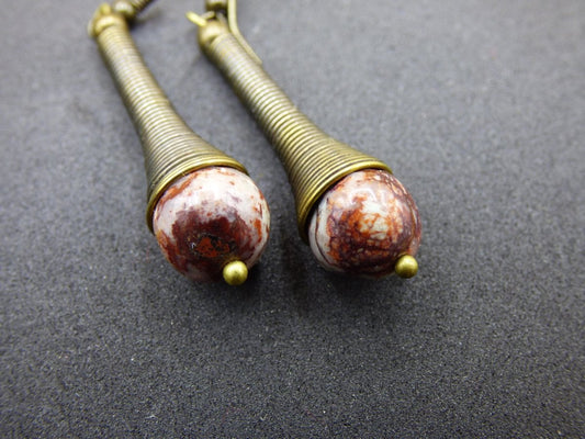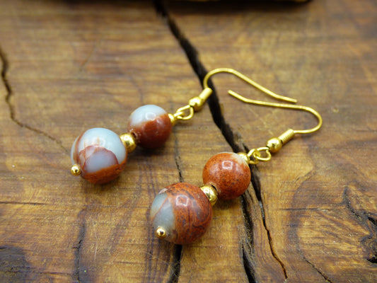 Diese zwei Perlen sind von einen unbekannten Gestein - eventuell Jaspis, eventuell auch etwas besonderes, wir wissen es ausnahmsweise nicht mehr...-jedoch 100% natürlich, das ist sicher. Edelstein Ohrringe ~ 10mm...