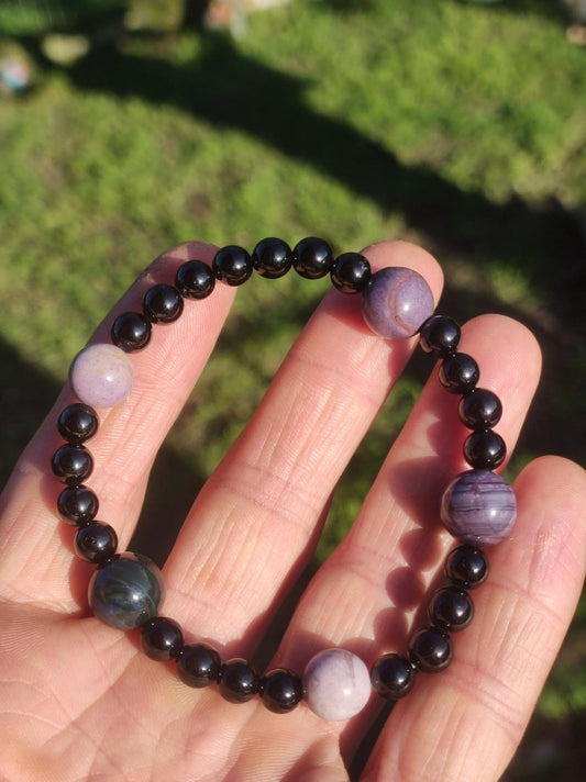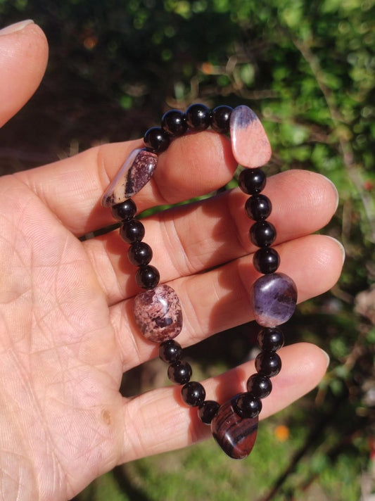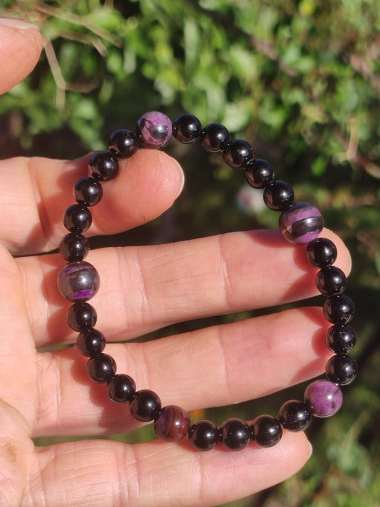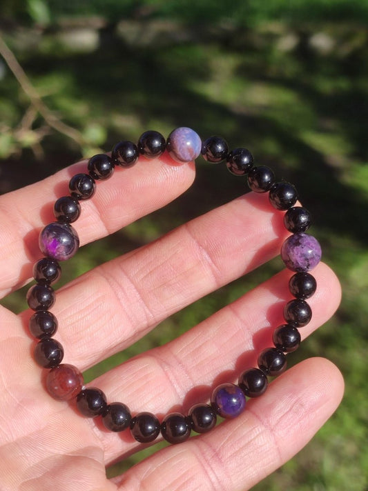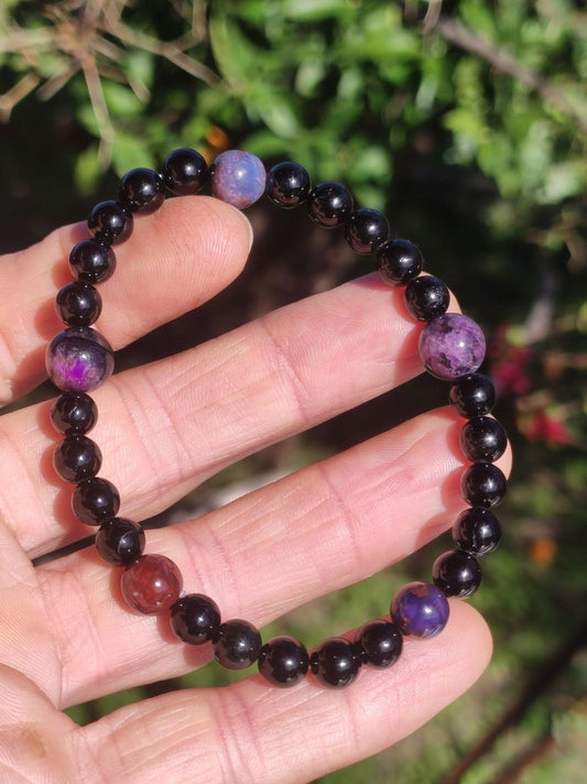Wunderschöner natürlicher Sugilith + schönem roten Bustamit Fluss - perfekt geschliffen und poliert (ungebohrt) -Wir haben auch viele Sugilith Ketten in unserem Shop Im Sonnenlicht aufgenommen Größe: 30 x 27...