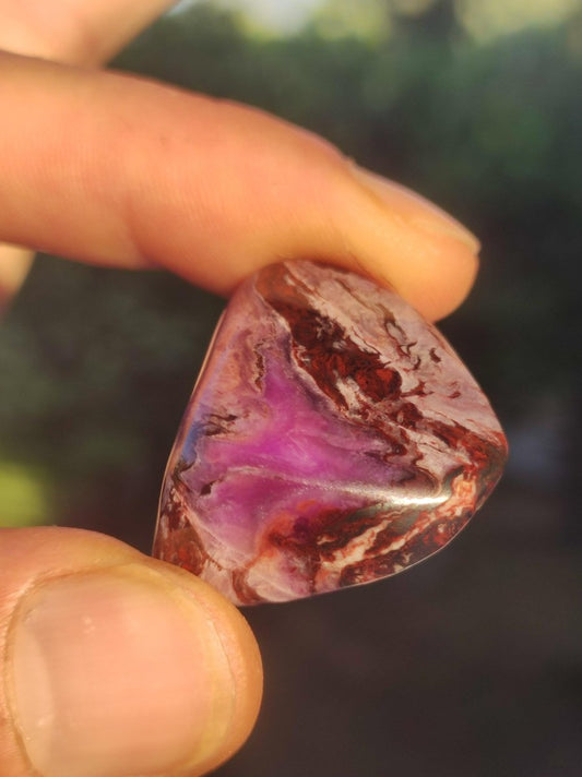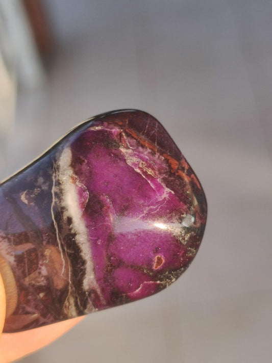 Wunderschöner natürlicher Sugilith - (ungebohrt) -Wir haben auch viel Sugilith Schmuck in unserem Shop Im Sonnenlicht aufgenommen Größe: 30 x 15 x 11 mm Edelsteine & Kristalle erzeugen vielfältige Wirkungen...