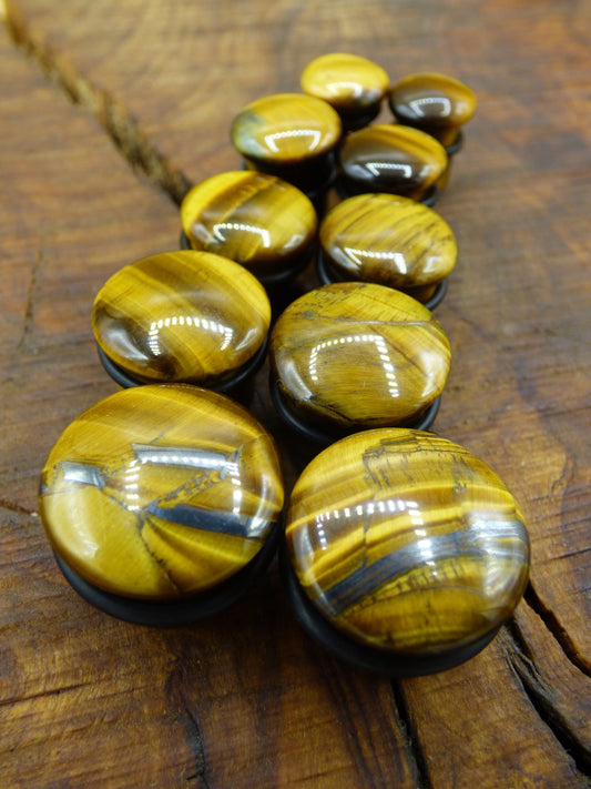 Tigerauge Edelstein Plugs in 6-16mm Größen mit unglaublichem Flash :) Ihr ersteigert hier einen(!) Plug je Kauf ~ Wenn gewünscht also 2x kaufen für ein Paar. 6mm 8mm 10mm 12mm...