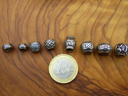 ~Dreadschmuck~ oder ~Bartschmuck~ hochwertige massive Edelstahlperlen Maße: 10-12 x 6-10 mm Lochgröße: 5-6mm 8 Verschiedene Perlen - je Kauf erhälst du EINE (1x) Perle Nummer 1+2 sind kleiner und leichter...