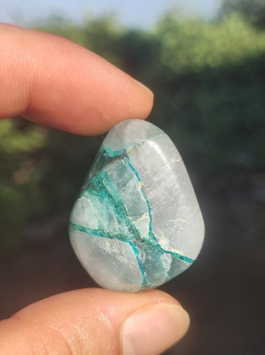 Ein traumhafter - Quantum Quattro - Edelstein in AAA Qualität *Unikat* -Herkunft: Peru -Quantum Quattro: Chrysocoll Shattuckit Quarz Azurit -Du erhältst den abgebildeten Stein - wir bieten diese Quantum Quattro...