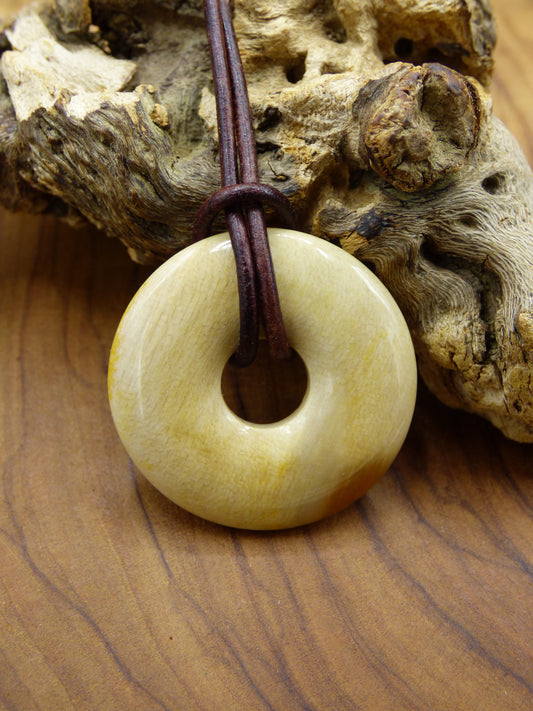 A necklace with a beautiful gemstone ~ petrified wood ~ donut shape 30mm ~ including 1.5mm antique brown leather cord Of course you will receive the stone pictured :) We...