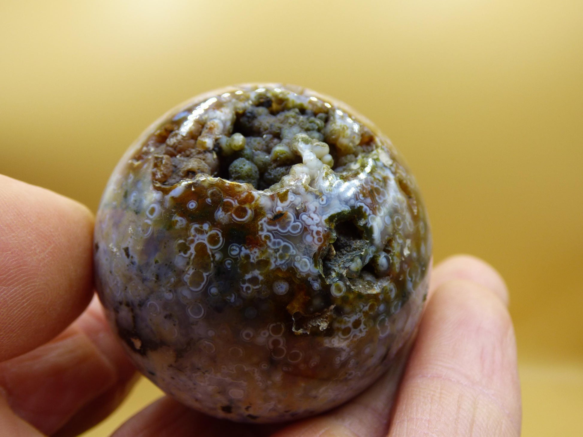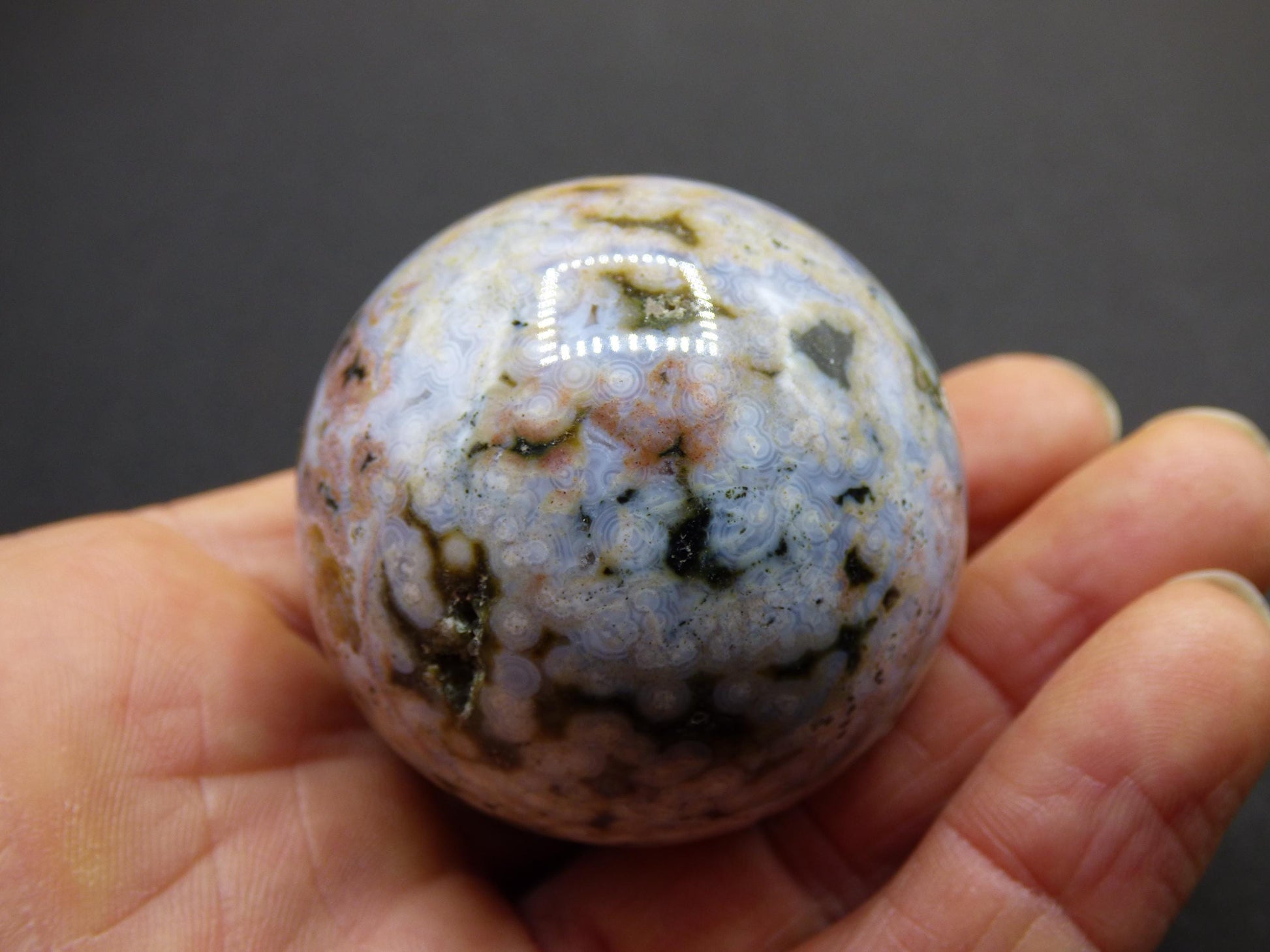 8 Adern Ocean Jaspis Orbicular ~ Edelstein Kugel *Rarität*Der "8th Veine" Ocean Jaspis mit punkten ist der seltenste und hochwertigste, er hat Orbiculare MusterHerkunft: Madagascar (seltenster Ozean Jaspis)Besondere Farbgebung, Punkte...