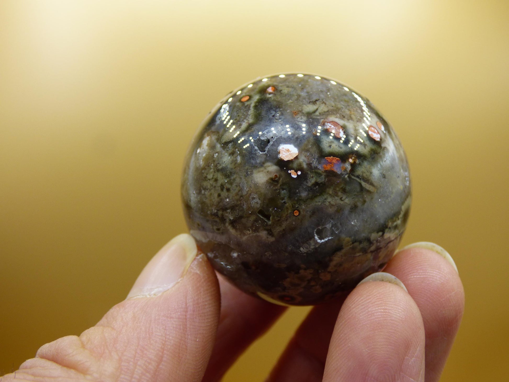 8 Adern Ocean Jaspis Orbicular rot) ~ Edelstein Kugel *Rarität*Der "8th Veine" Ocean Jaspis mit punkten ist der seltenste und hochwertigste, er hat Orbiculare Muster!Besonders viele rote Punkte (eine der...