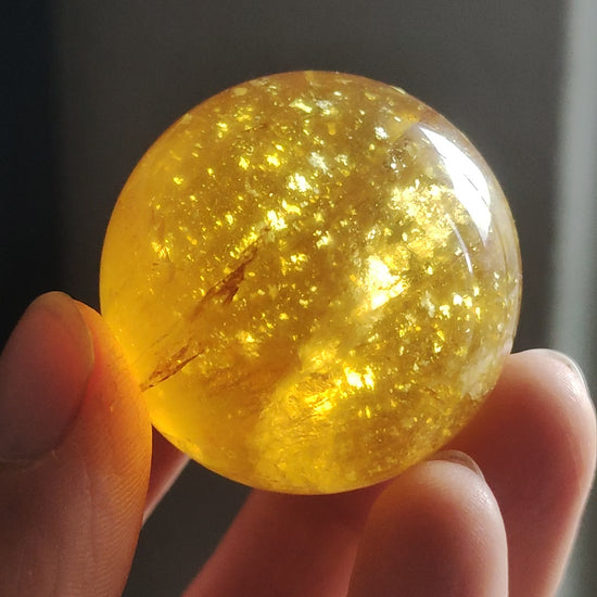 A beautiful magical rarity for young and old, a ~Fluorite yellow with Mica~ gemstone ball / crystal / sphere / ball / massage ball / play ball / meditation object / calming ball