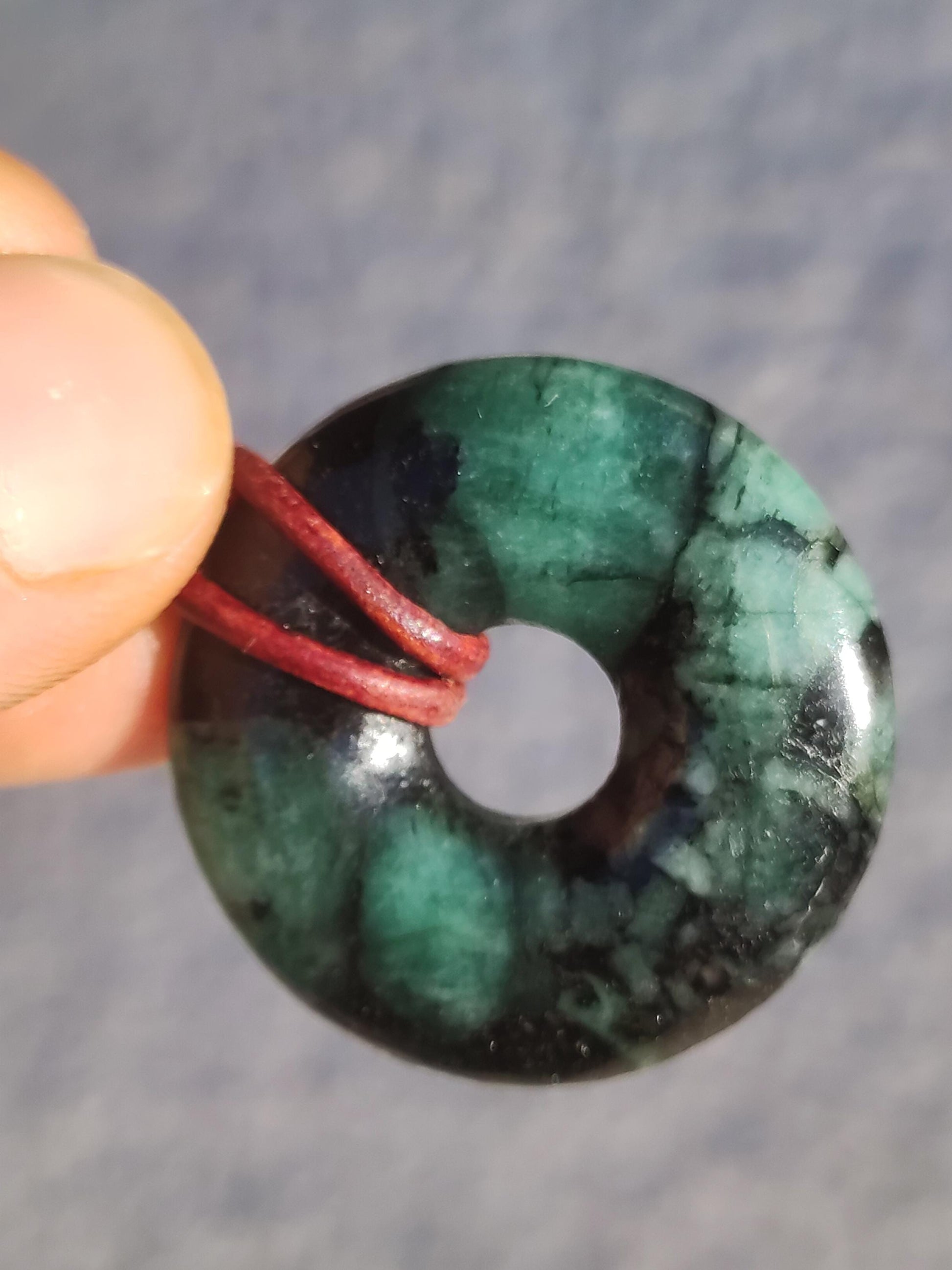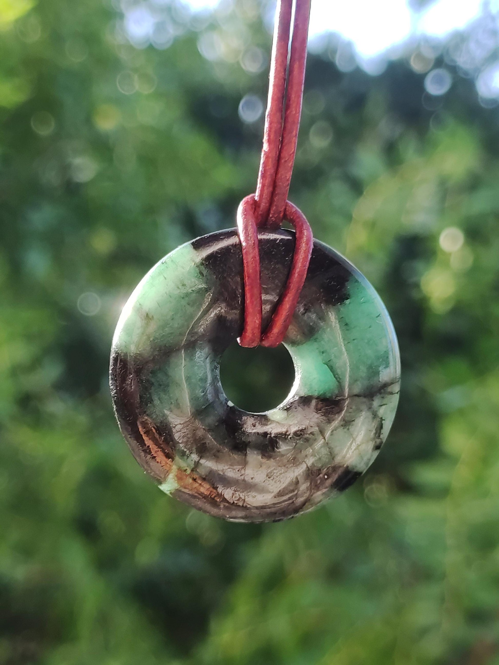 Emerald Donut ~ Gemstone Necklace Incl. 1.5mm Antique Brown Leather Cord You will receive the pictured Emerald Donut 30 x 6 mm We hope you enjoy browsing our shop. If...