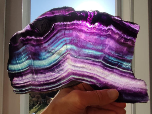 A dreamlike fluorite disc *collector's item* Dimensions: approx. 230 x 140 x 93 mm (very large compared to other offers) Weight: approx. 720g Of course you will receive the product...