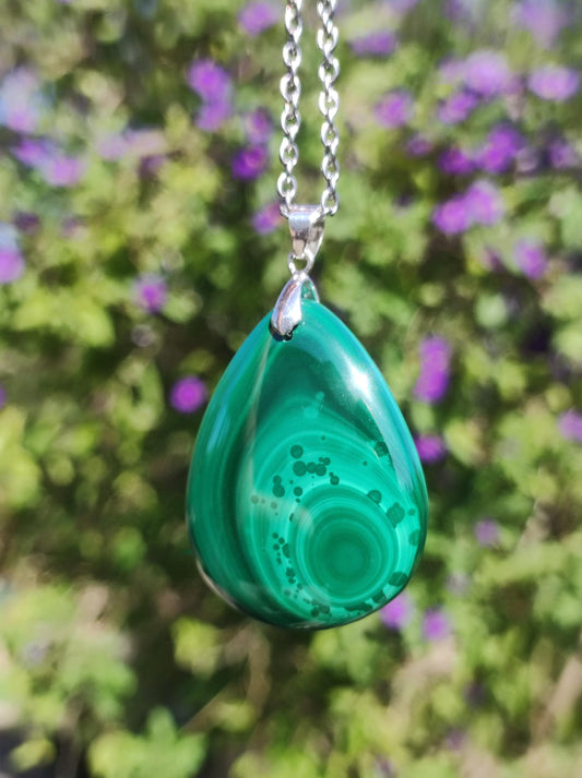 Malachite AAA in a drop shape ~ incl. 925 silver eyelet & a 304 stainless steel chain with lobster clasp A very, very high-quality cut gemstone, wonderful quality! You will...