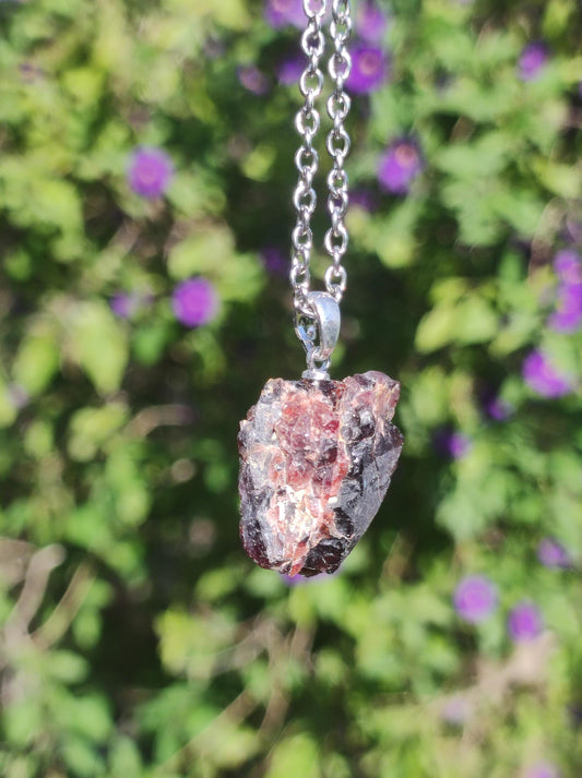 Eelstein necklace with a raw almandine garnet ~ 925 silver eyelet and a 304 stainless steel chain with a lobster clasp We hope you enjoy browsing around in our shop....
