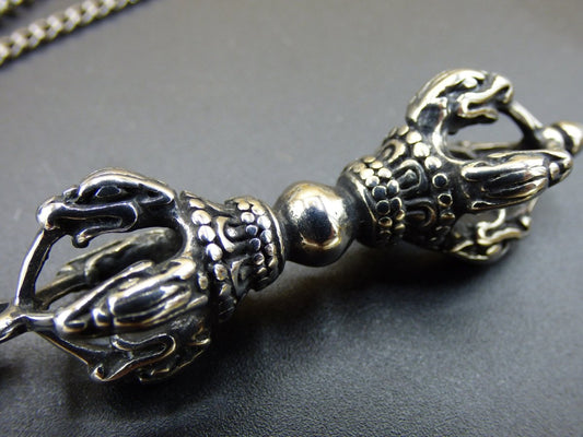 A very special large - Dorje Vajra pendant ~Dimensions: 52 x 17 mm ~Material: Brass with an antique silver zinc alloy ~Incl. 304 stainless steel chain 2mm thick in metal...