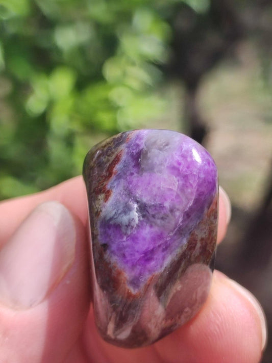 Beautiful natural Sugilite - (undrilled) -We also have a lot of Sugilite jewelry in our shop Taken in sunlight Size: 30 x 15 x 11 mm Gemstones and crystals have...