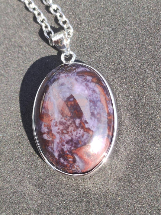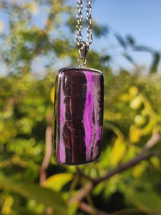 Gemstone necklace with a genuine ~Sugilite~ in a 925 silver setting + eyelet & a 304 stainless steel chain with lobster clasp Size of Sugilite pendant: 30 x 19 mm...