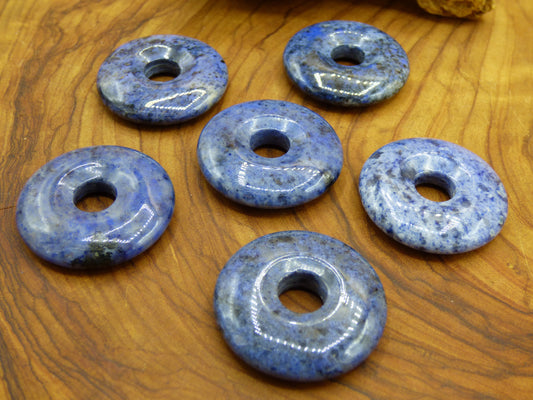 Anhydrite / Angelite ~ Gemstone Donut Necklace ~ including 1.5mm leather cord in antique brown for knotting for your desired length Origin Angelite: -Peru Honed: -Peru, in our production Size:...