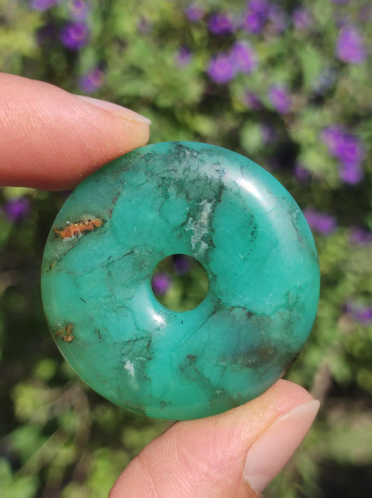 40mm Chrysoprase AAA protective donut from Australia ~ incl. "Flower of Life" donut holder made of 304 stainless steel (silver alloy) + 304 stainless steel chain with lobster clasp Extreme...