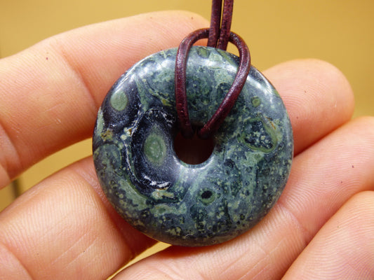 Gemstone necklace with a Kabamba Rhyolite (Nebula Stone/Eldarite) 30mm donut including leather cord 2mm in antique brown for knotting We hope you enjoy browsing around in our shop. If you...