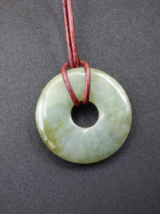 Gemstone necklace ~ Burma Jade ~ Donut - 30mm incl. leather strap 1.5mm in antique brown This is an absolute rarity at an incredible price Green jade is a valuable...
