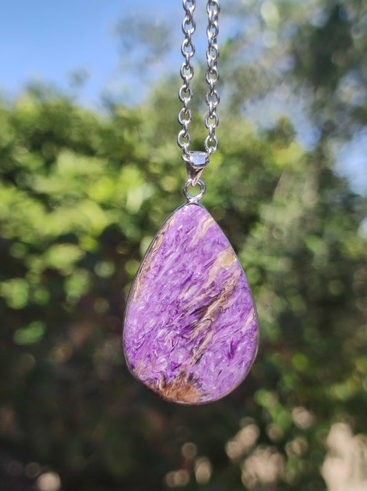 Gemstone necklace with a ~Charoite AAA~ in a 925 silver setting + eyelet & a 304 stainless steel chain with lobster clasp Size of Charoite pendant: 36 x 27 mm...