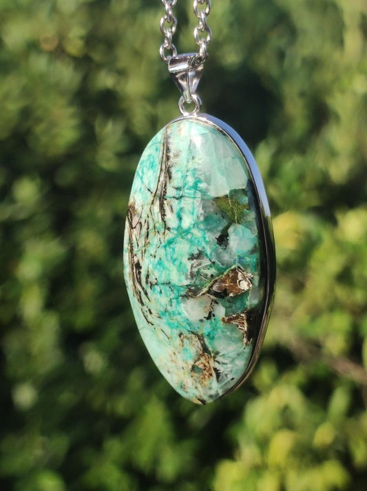 Malachite-Chrysocoll necklace ~ incl. 925 Sterling silver setting + eyelet & a 304 stainless steel chain with lobster clasp Pendant size: 37 x 27 mm (measured without eyelet) As always,...