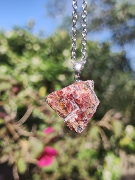 Eelstein necklace with a raw almandine garnet ~ 925 silver eyelet and a 304 stainless steel chain with a lobster clasp We hope you enjoy browsing around in our shop....