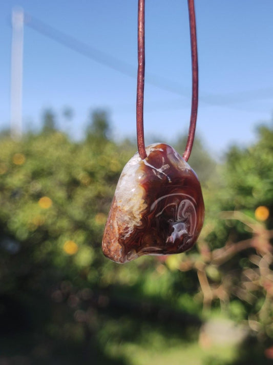 A beautiful natural fire achate from Mexico-with a brass eyelet & 304 stainless steel chain with a carbine clasp Gemstones and crystals produce a variety of effects as healing stones,...