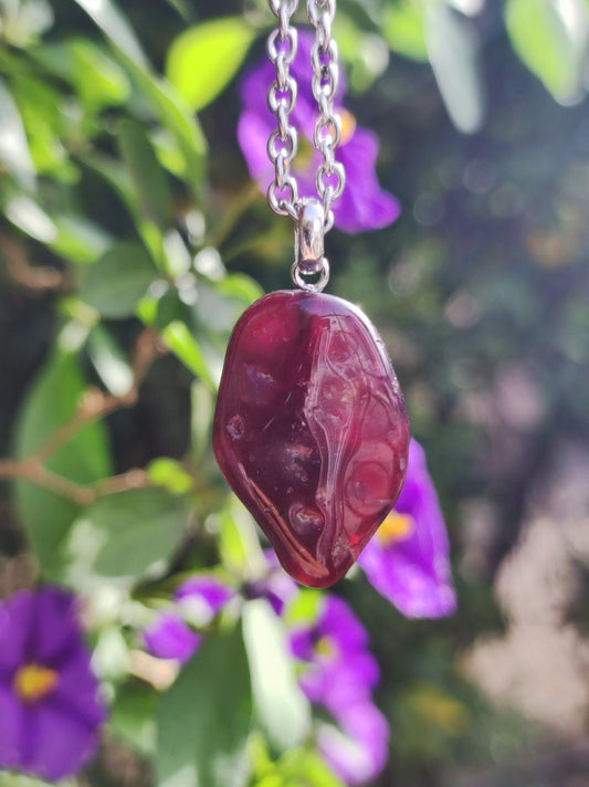 Eelstein necklace with an almandine garnet A ~ 925 sterling silver eyelet and a 304 stainless steel chain with a lobster clasp We hope you enjoy browsing around in our...
