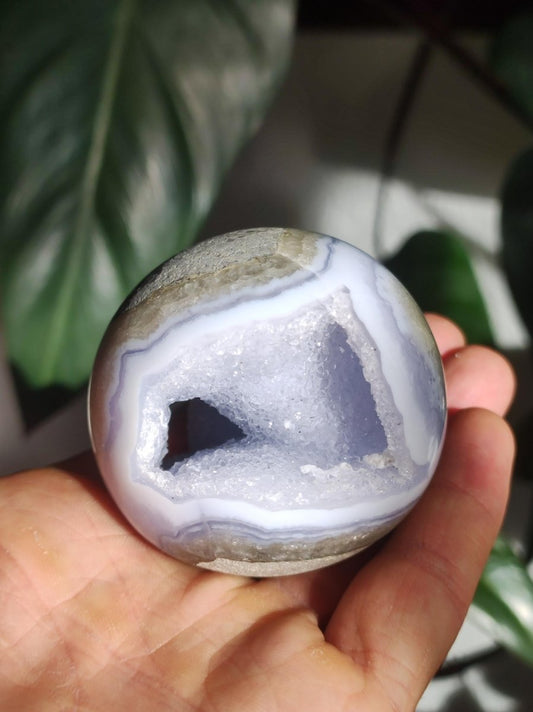 A beautiful magical rarity for young and old, a shiny rare ~Chalcedony AAA with Druzy Geode *very rare* ~ Gemstone Ball / Crystal / Sphere / Ball / Massage Ball...