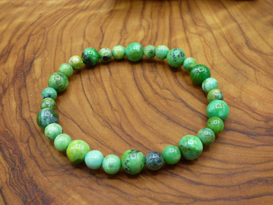 A beautiful bracelet ~Variscite~ on a stretch cord. Patterns to choose from: 6mm 6/8mm 8mm 10mm This Variscite has an incredible natural poisonous green color - a very special rarity...