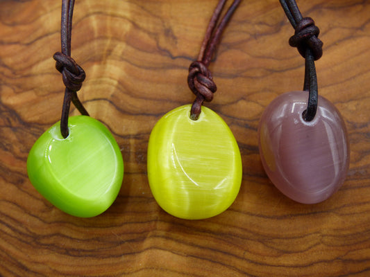 Necklace with an Ulexite gemstone Three different ones to choose from Incl. 2mm leather strap in antique brown for knotting. "Ulexite is a mineral of sedimentary origin that arises from...