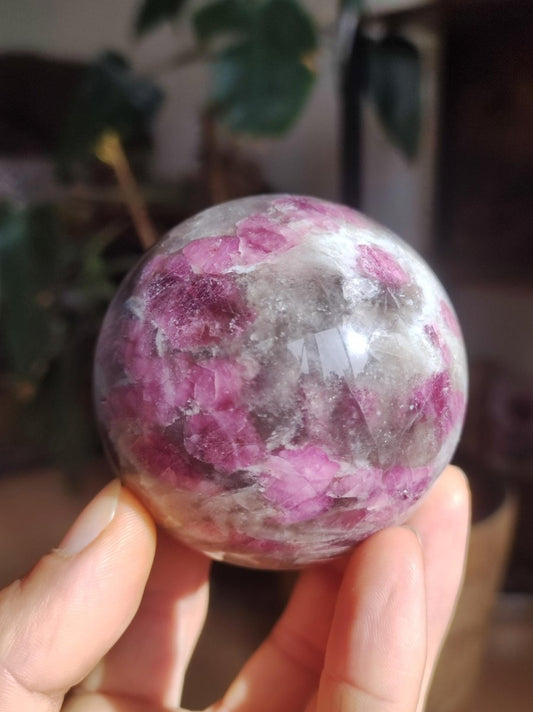 Rubellite / Pink Tourmaline ~ Gemstone Sphere A dreamlike rare pink tourmaline sphere, also very large, a collector's item Size: 65 mm Just as green tourmaline carries male energy, pink...
