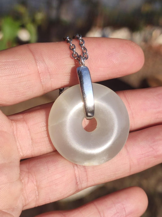 Gemstone necklace moonstone white ~ 30mm donut shape ~ including 925 sterling silver donut holder + 304 stainless steel chain with lobster clasp You will receive the moonstone donut pictured...