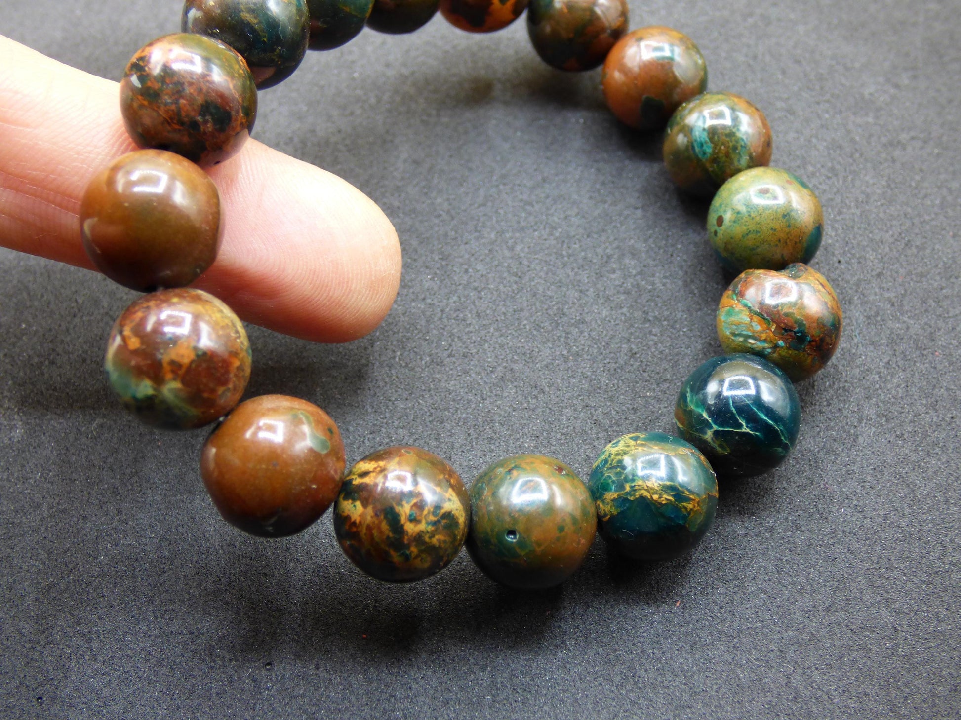 Bracelet en perles d'opale de 12 mm - Pierre précieuse *Unique* Pierre de guérison naturelle Cristal Chakra Cadeau rare pour hommes et femmes, Multicolore, Rouge, Bleu