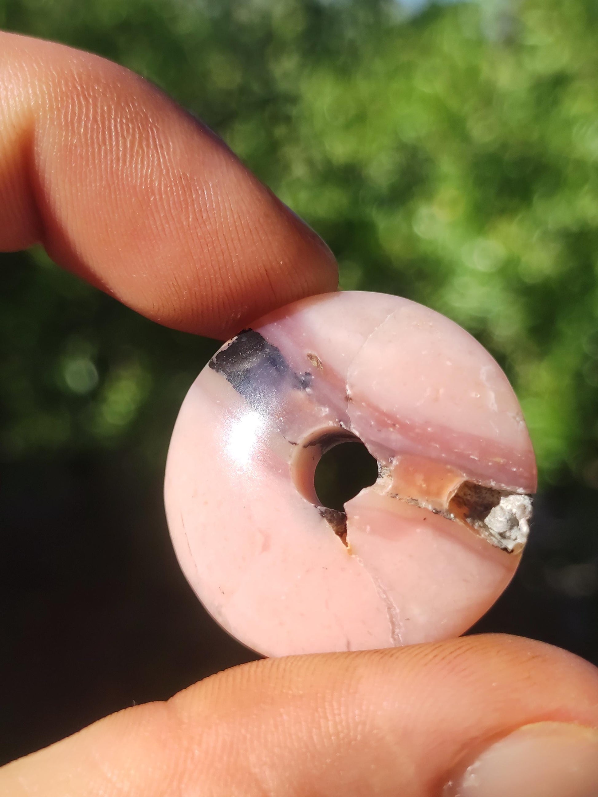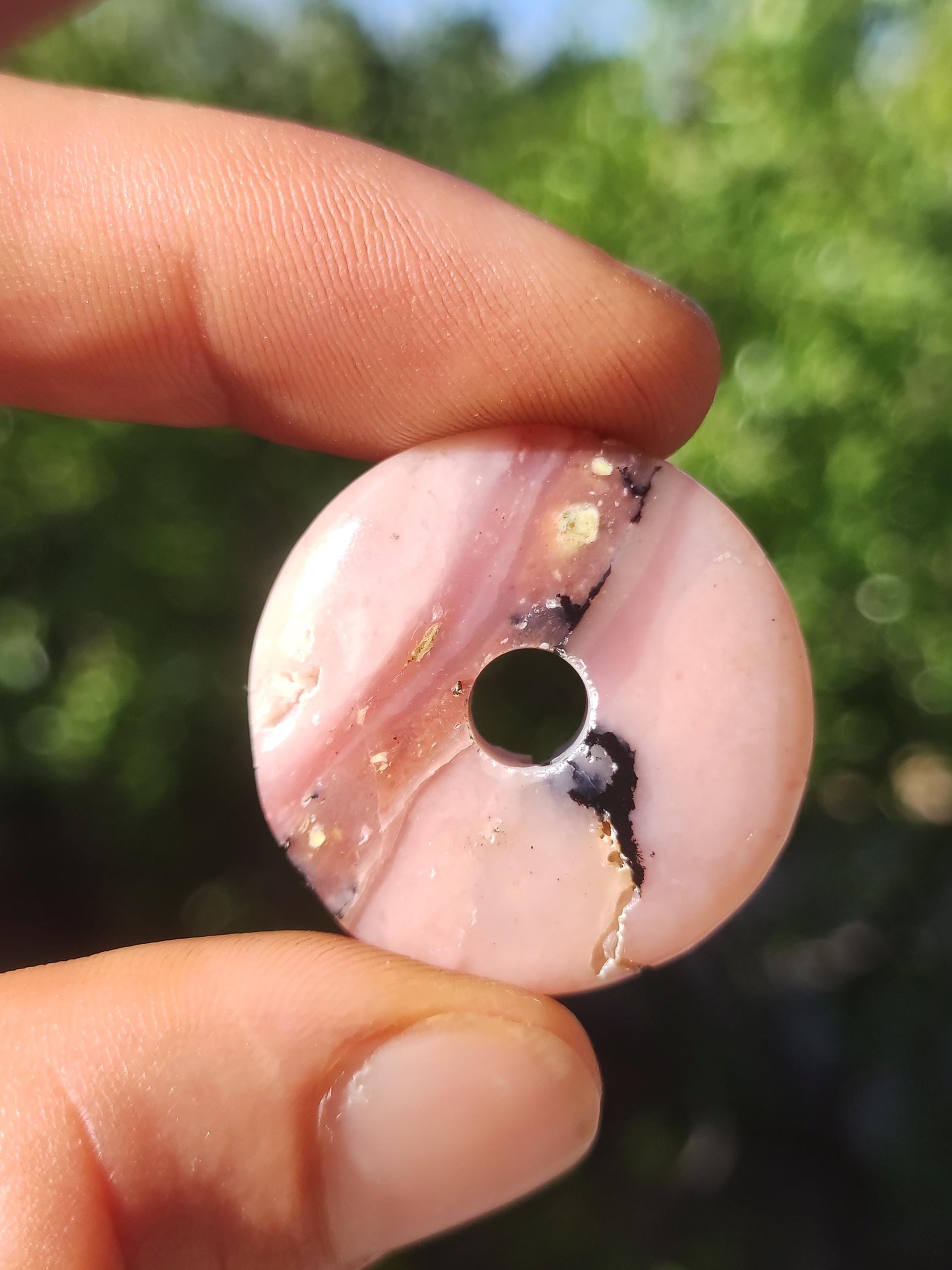 Collier en pierre précieuse en forme de donut d'opale des Andes de 30 mm ~ comprenant un cordon en cuir marron antique de 1,5 mm à nouer à la longueur souhaitée.