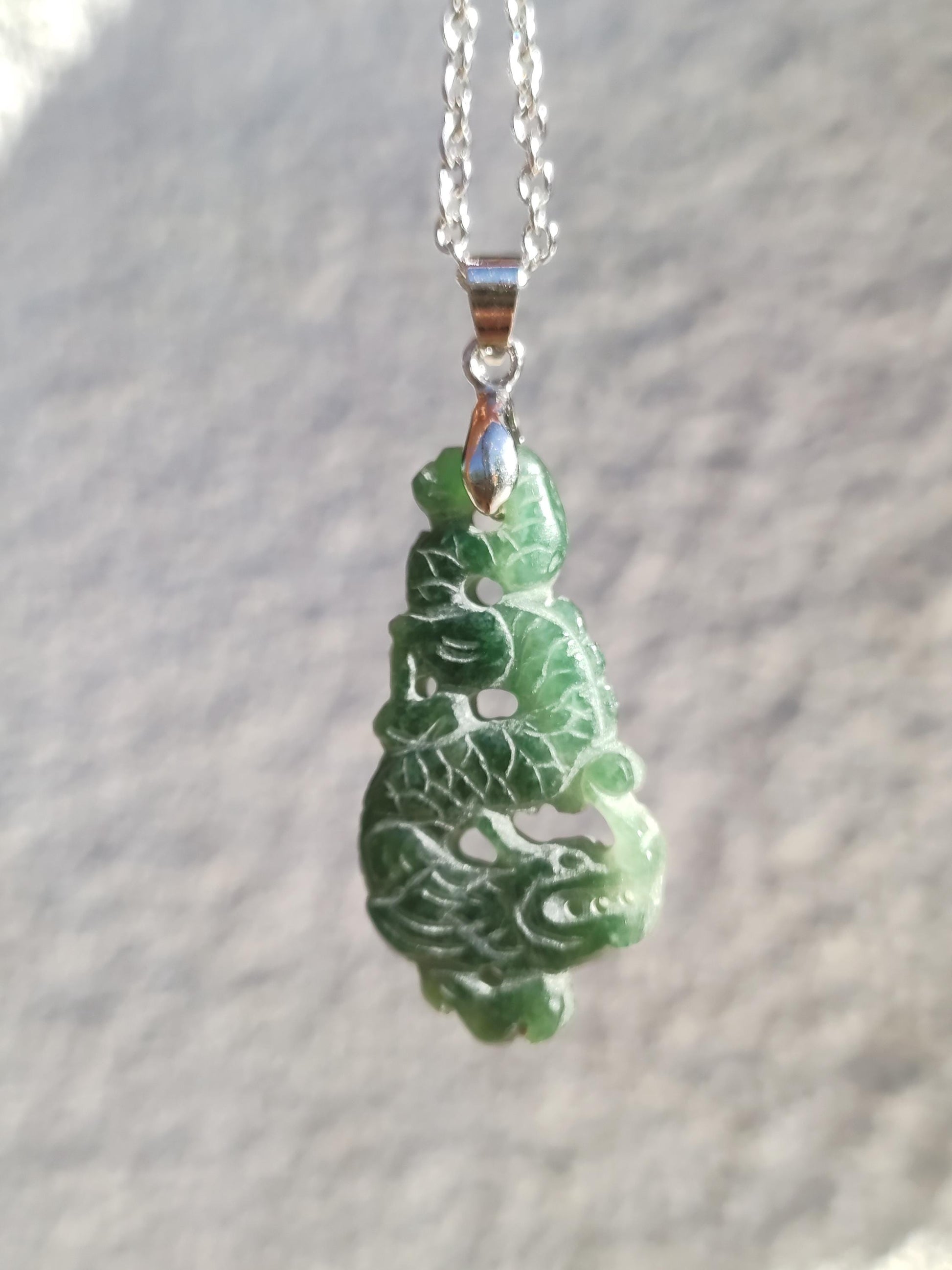 dragon sculpté ~ Jade de Birmanie original - Qualité A - très verdâtre (pas de jade de Chine - ce jade vient du Myanmar (Birmanie) et est très très rare...