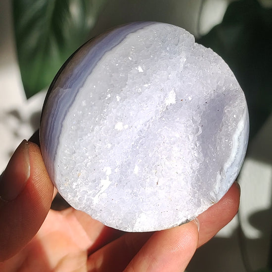 Une belle rareté magique pour petits et grands, une rare et brillante ~Calcédoine AAA avec Druzy Geode *très rare* ~ Boule de pierre précieuse / Cristal / Sphère / Boule / Boule de massage / Boule de jeu / Objet de méditation