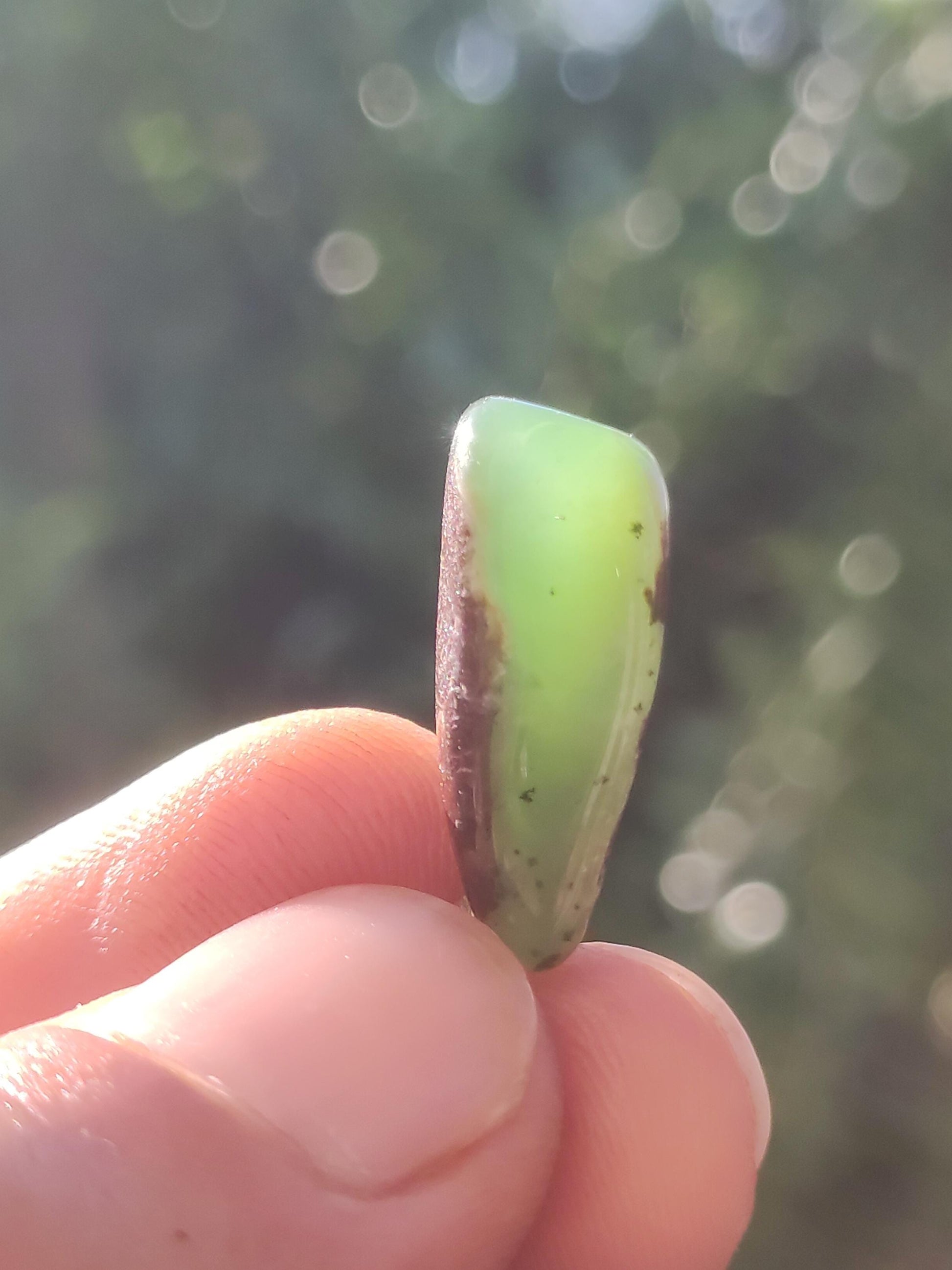 La chrysoprase vert pomme est une variante de la calcédoine. Elle purifie et détoxifie à tous les niveaux, car c'est son énergie. Elle stimule également le foie et est bénéfique pour tous les processus de détoxification. Elle est également considérée comme une pierre d'amour éternel et est souvent offerte comme pierre de protection et de cœur lors des mariages.