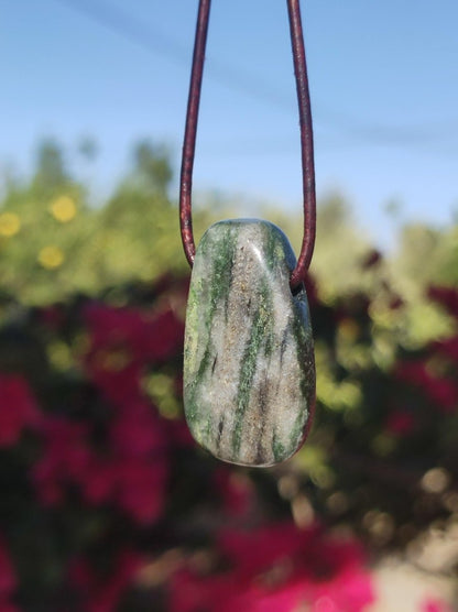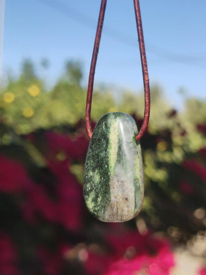 Avec cordon en cuir marron antique de 2 mm à nouer.