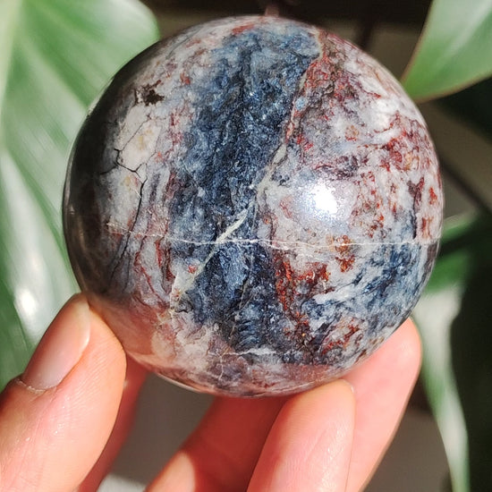 Pietersite - Boule de Pierre Gemme Bleu Rouge Pierre de Guérison Décoration Naturelle Sphère Collectionneur Energie Vivante Qualité Rare Rareté Cadeau Homme Femme Il Elle