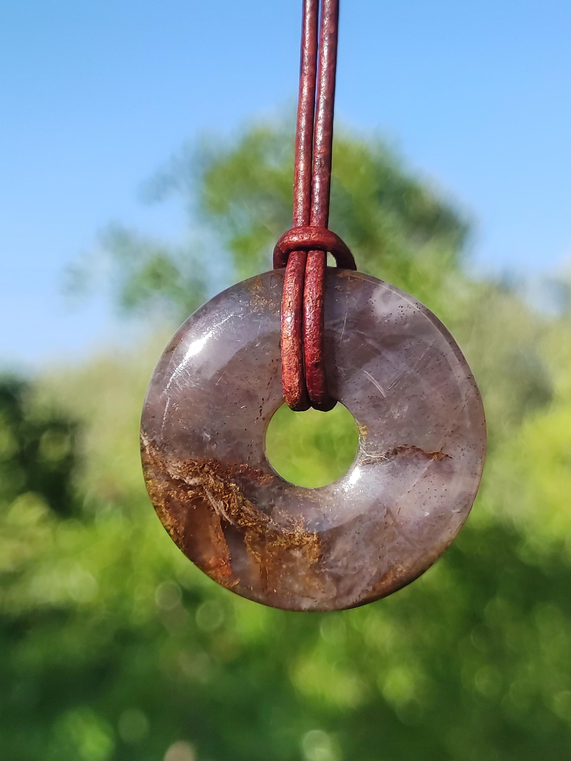 Collier en pierre précieuse Pietersite en forme de donut ~ avec cordon en cuir de 1,5 mm en marron antique pour le nouage Un beignet très spécial, transparent avec motif...