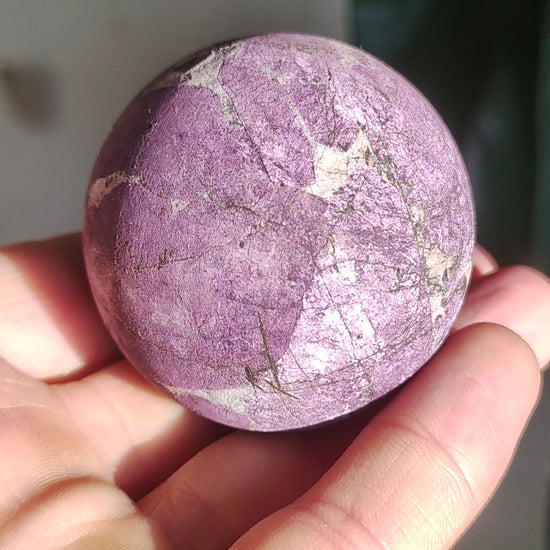 Purpurite - boule de pierre précieuse violette pierre de guérison naturelle décoration sphère cristal cadeau lui elle maison inauguration appartement énergie pouvoir collectionneur rareté