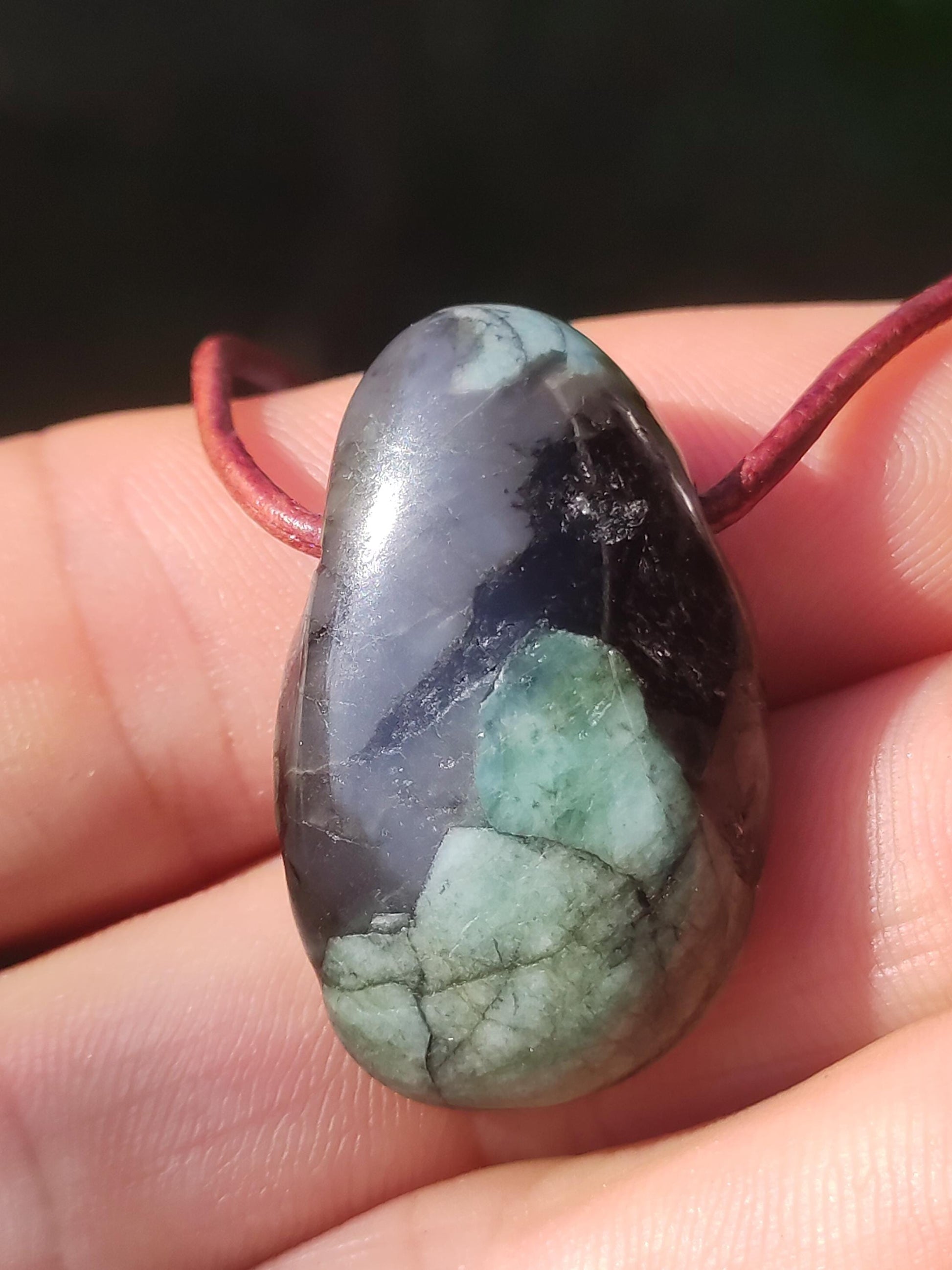 Collier de pierres précieuses émeraude / émeraude vert noir naturel HIPPIE GOA Boho ethnique pierre de guérison cristaux bijoux pendentif homme femme cadeau il elle