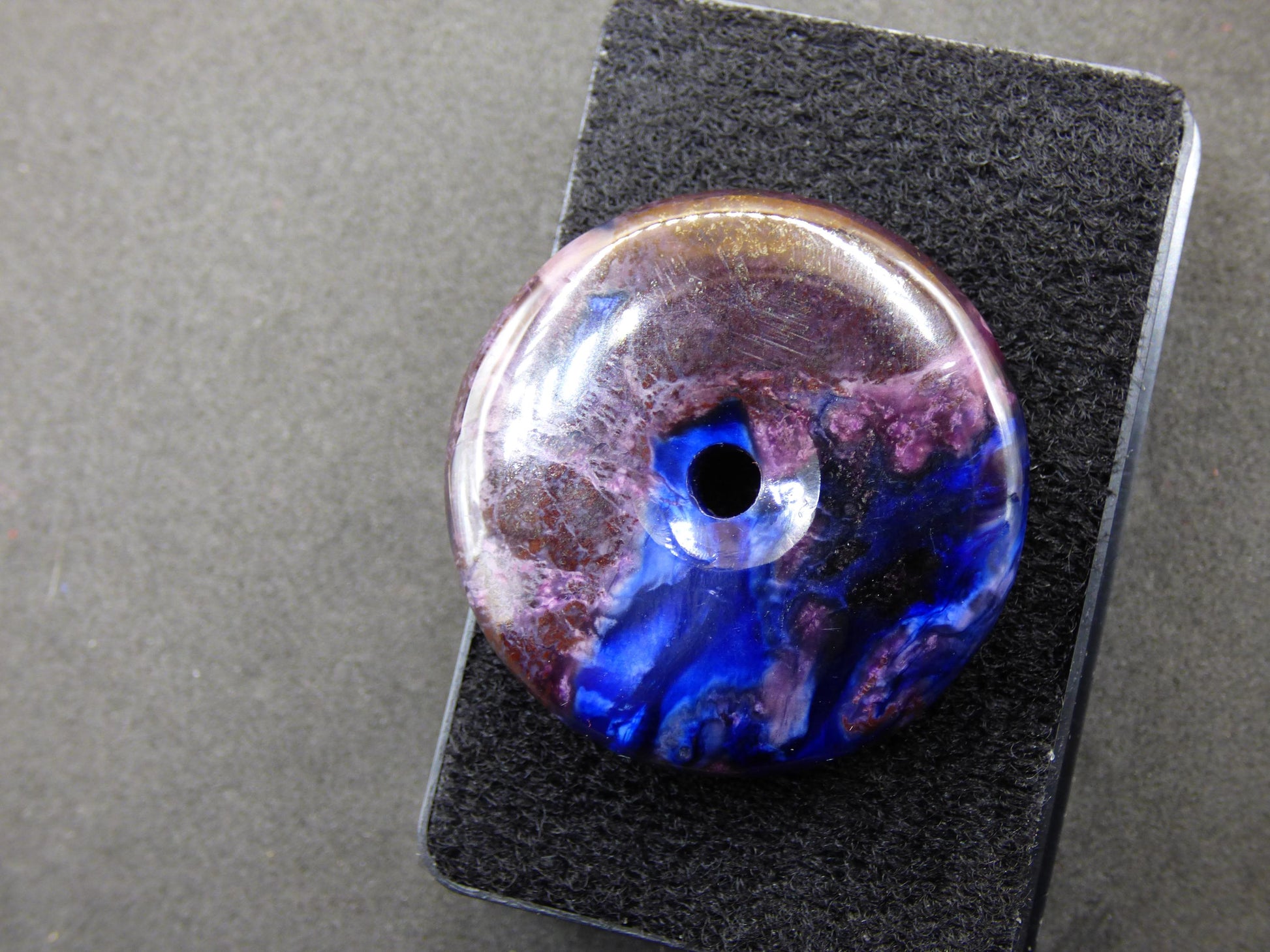 L'un des plus beaux beignets de richterite sugilite que nous ayons jamais eus - également broyé à un grain supérieur à 6000 et poli avec une intensité particulière - profitez de ce spécimen exceptionnel.