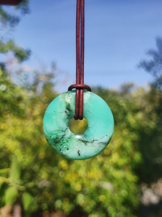 Beignet protecteur Chrysoprase AAA de 30 mm d'Australie ~ Rareté extrême et disponible une seule fois Vous recevrez la pierre illustrée ! Comprend un cordon en cuir marron antique de...