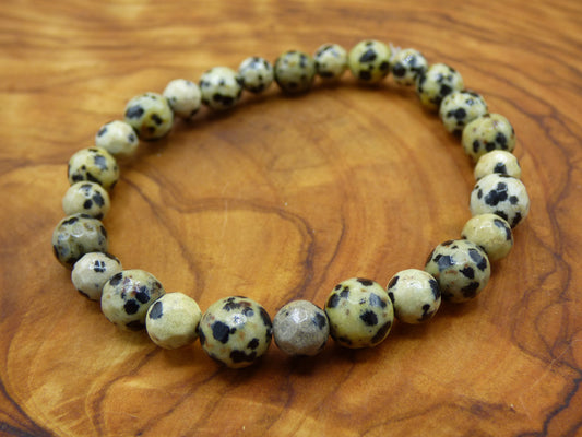 Jaspe Dalmatien 6&8mm ou 8mm ~ Bracelet de pierres précieuses sur un cordon extensible ~Fait main à Berlin ~Garantie de réparation Matériel: ~Pierres précieuses naturelles de la meilleure qualité sur...