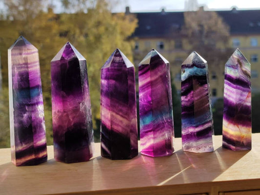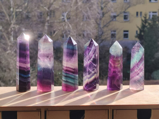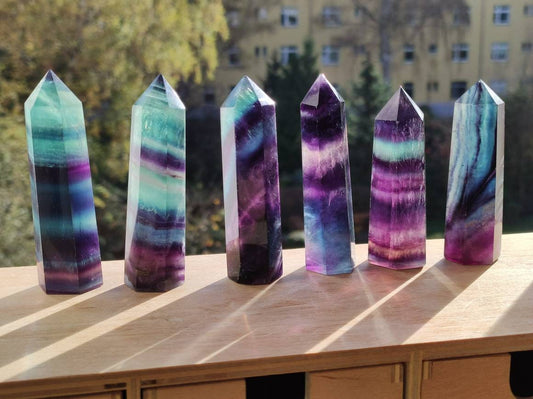 ~Arc-en-ciel ???? Fluorine~ De belles pointes de fluorine d'une qualité fantastique 100% naturel 1-76mm 2-74mm 3-72mm 4-72mm 5-67mm 6-69mm Lorsque l’on commence à s’intéresser au sujet des cristaux et des...